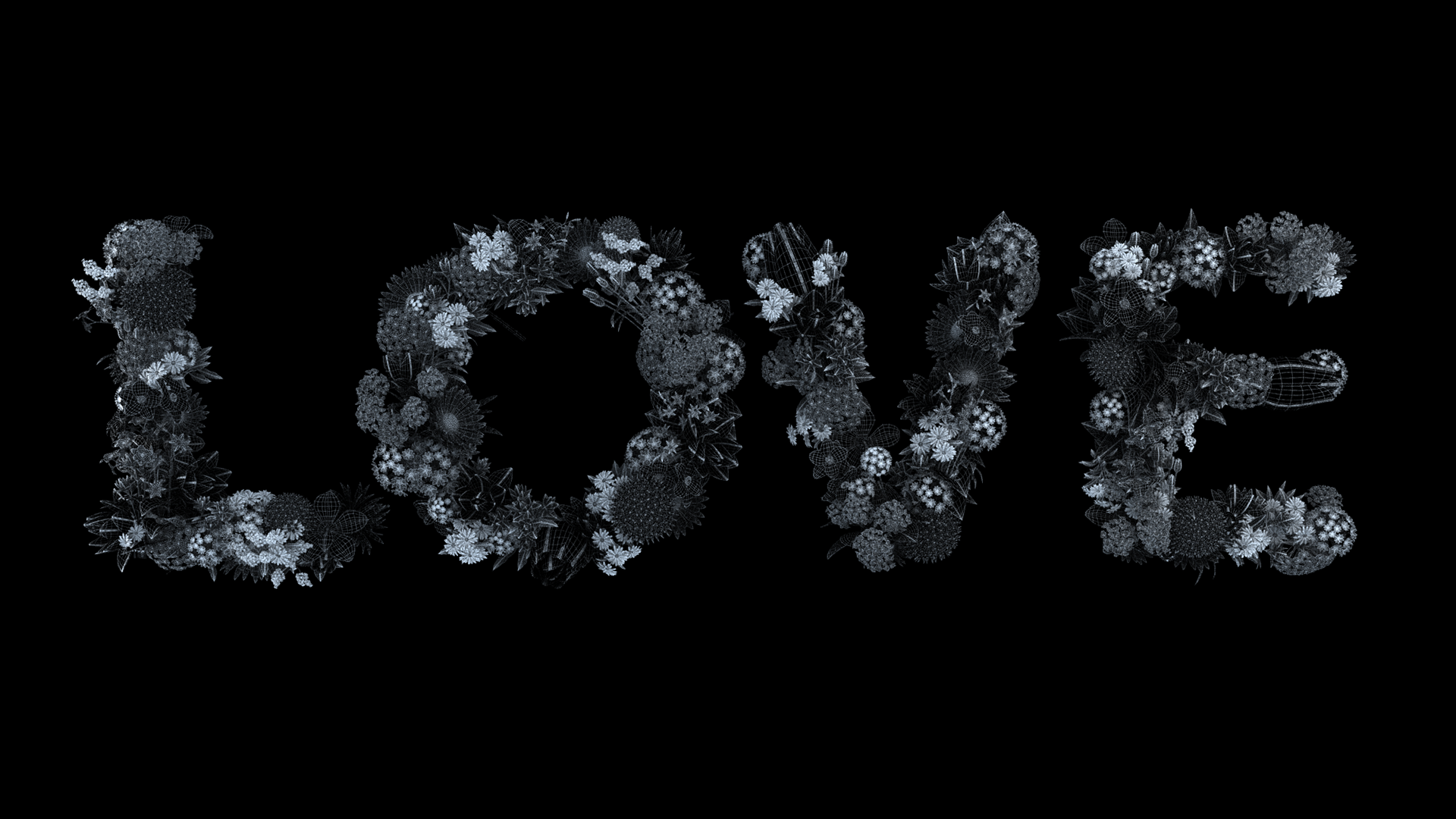 Creación de tipografía en 3D con flores para campaña de viajes Meliá. Cliente: Viajes Meliá Productora: Aproductions. Agencia: Ogilvy. 3D: Juanjo González.